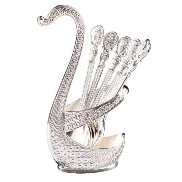 قاشق چای خوری مدل پایه قو بسته 6 عددی به همراه جا قاشقی