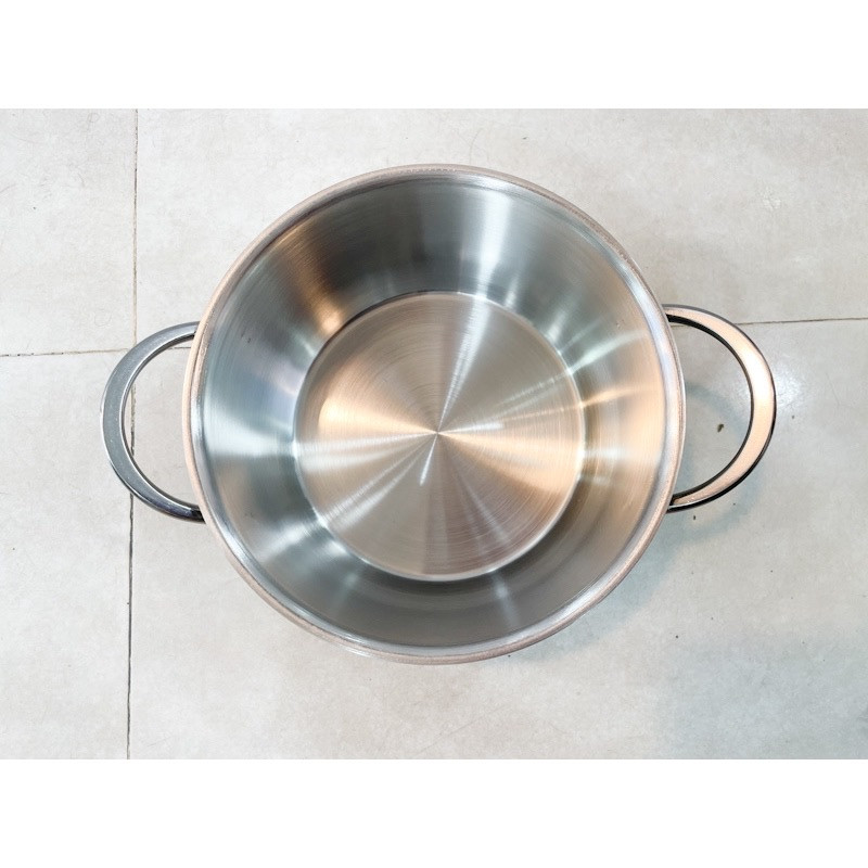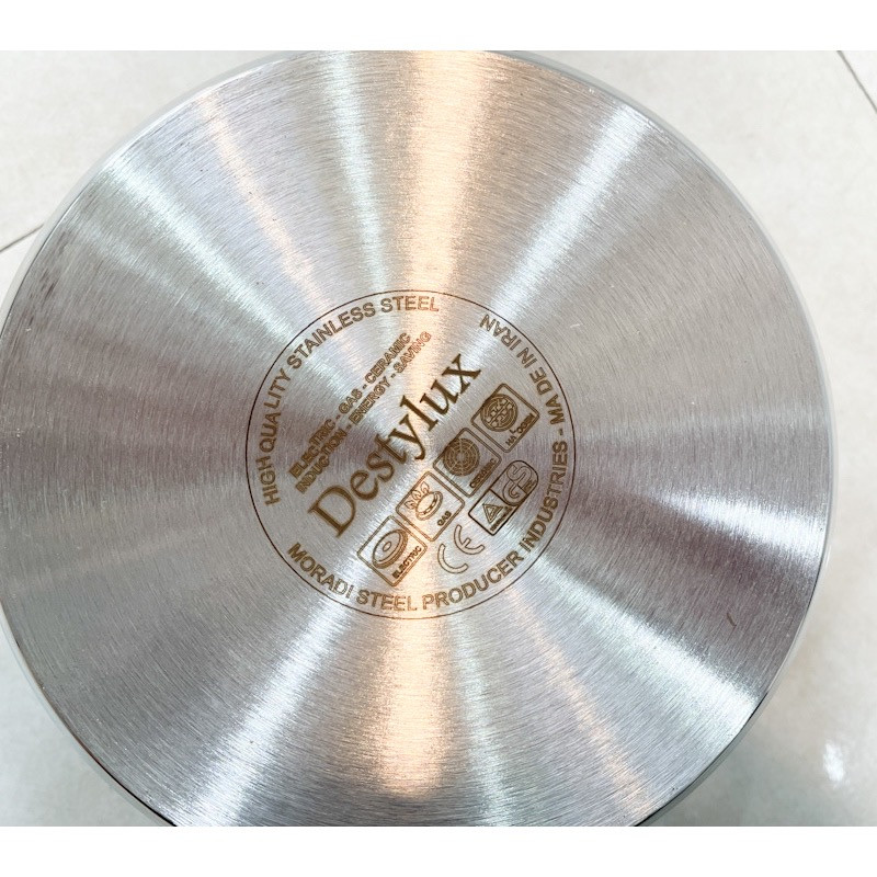 ورق ضخیم استیل درجه 1 ، کف بیرونی چدن ، قطر مفید قابلمه 20 سانتیمتر ، ارتفاع مفید داخلی قابلمه 11 سانتیمتر