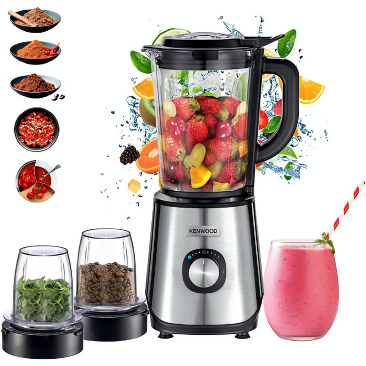 مخلوط کن کنوود مدل BLM45 محصولی بی نظیر با قابلیت دو کاره است. که می توان هم به عنوان یک مخلوط کن و هم به عنوان یک آسیاب قدرتمند عمل کند. موتور دستگاه دارای توان 1000 وات است. که در نوع خود بی نظیر است. و با تیغه هایی چهار پر از جنس استیل ضد زنگ هر نوع ماده غذایی اعم از انواع میوه و سبزیجات را برای شما مخلوط می نماید. و می توانید خوشمزه ترین و سالم ترین نوشیدنی ها را در منزل خود با کمترین امکانات تهیه نمایید. این دستگاه دارای دو سرعت مجزا می باشد. که می تواند برای میوه و سبزیجات نرم تا سخت مورد استفاده قرار گیرد. و با عملکرد پالس می تواند کار های شما را سریعتر به انجام برساند. و یک نوشیدنی یک دست و یکنواخت را برای شما آماده سازد. جنس پارچ مخلوط کن از شیشه است. که در برابر خط و خش ، بو و تغییر رنگ مقاوم است. و دو عدد آسیاب که با این دستگاه ارائه شده است. کمک می کند تا انواع پودر ها را در منزل خود آماده سازید. و انواع ادویه و قهوه را در منزل خود پودر نمایید. و در آخر با قابلیت تفکیک قطعات و امکان شست و شو در ماشین ظرفشویی نهایت راحتی را برای شما فراهم می سازد. مخلوط کن کنوود مدل BLM45 یکی از قدرتمندترین مخلوط کن ها در نوع خود است. که توان آن معادل 1000 وات است. که عملکردی عالی را برای مخلوط کردن هر نوع ماده ی غذایی اعم از انواع میوه، سبزیجات ، ادویه و دانه های قهوه را فراهم می آورد. مخلوط کن کنوود مدل BLM45 علاوه بر پارچ مخلوط کن دارای دو عدد آسیاب مجزا است. که برای پودر کردن انواع ادویه جات و دانه های قهوه کاربرد دارد. جنس تیغه ی این آسیاب ها نیز از نوع استیل ضد زنگ است و با طراحی منحصر به فردی که دارند می توانند انواع آجیل ،ادویه و دانه های قهوه را برای شما پودر نمایند. و شما همیشه در منزل خود تازه ترین مواد غذایی را در دست داشته باشید.