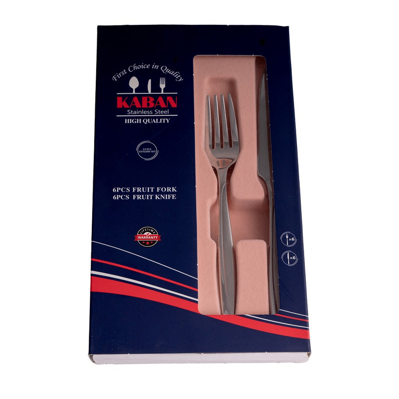 سرویس کارد و چنگال میوه خوری کابان ساخته شده از استیل ضد زنگ 18/10( 18 درصد کروم برای پایداری در برابر لکه دار شدن و زنگ زدن،10 درصد نیکل برای جلا و درخشندگی)، طراحی زیبا و به روز، انتخاب مناسبی برای افرادی ست که به دنبال کیفیت و زیبایی برای سرو هستند.این ست قابلیت شستشو در ماشین ظرفشویی را دارد و سالها براق بودن و جلای خود را حفظ خواهد کرد.