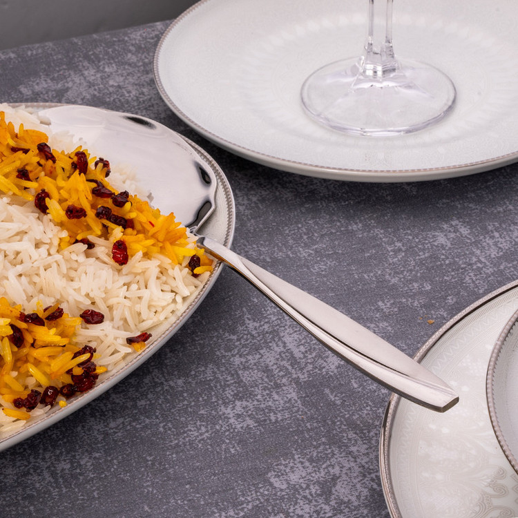 کفگیر کابان ساخته شده از استیل ضد زنگ 18/10( 18 درصد کروم برای پایداری در برابر لکه دار شدن و زنگ زدن،10 درصد نیکل برای جلا و درخشندگی)، طراحی زیبا و به روز، انتخاب مناسبی برای افرادی ست که به دنبال کیفیت و زیبایی برای میز سرو غذا هستند.این کفگیر قابلیت شستشو در ماشین ظرفشویی را دارد و سالها براق بودن و جلای خود را حفظ خواهد کرد.