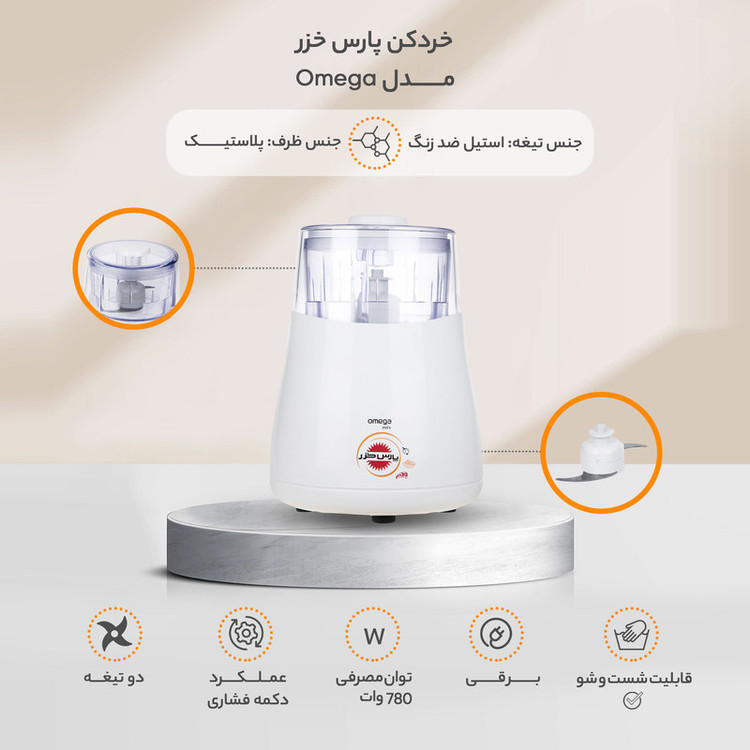 سایر توضیحات: قابلیت خردکردن انواع سبزیجات، خشکبار و گوشت قرمز