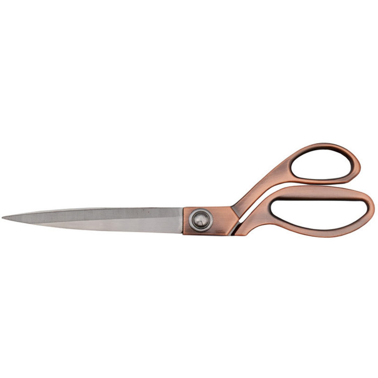 قیچی دسته مسی SENIOR TAILOR SCISSORS که جنس تیغه آن از فلز STAINLESS STEEL با کیفیت ساخته شده، دارای دسته ای فلزی با روکش مسی رنگ بسیار زیبا و خوش دست است که این قیچی را از سایرین جدا می کند، دسته طلایی و چشم نواز این قیچی باعث شده تا انتخاب اول نوعروسان جهت جهیزیه باشد، در ضمن دسته براق این قیچی مانع از گم شدن آن در لابلای لباسها و پارچه ها میشود.