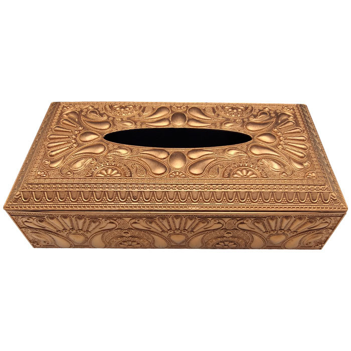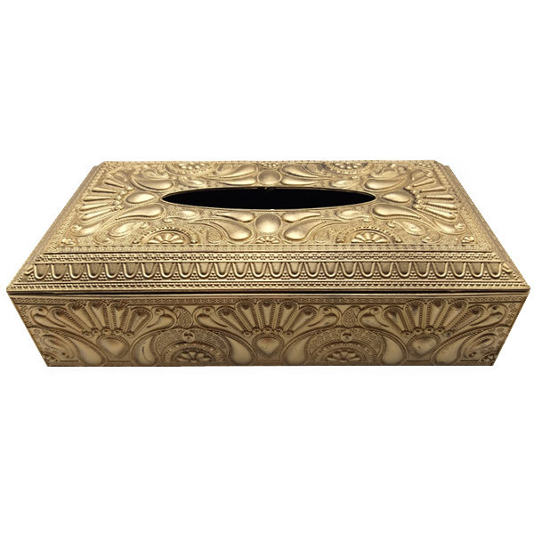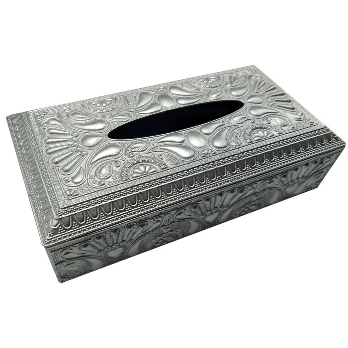 این محصول یک کاور و نگهدارنده دستمال کاغذی با ابعاداستاندارد است که بدنه از جنس پلاستیک رنگ شده با رنگهای کروم متالیک و مسی متالیک میباشد و درخشان است و نمایی مانند جنس فلزی دارد.