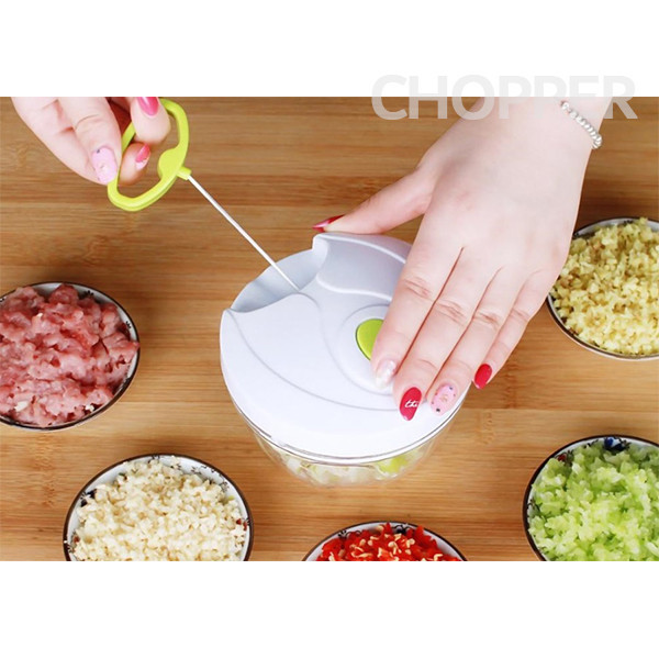 همیشه برای خردکردن سبزیجات، هویج، پیاز، میوهها و دیگر مواد غذایی، داشتن یک وسیله که بتواند عمل خردکردن آسان را انجام دهد، به شما کمک میکند غذای خود را سریعتر و با کیفیت بیشتری طبخ کنید. یکی از این دستگاهها، خردکن و همزن دستی است. این دستگاه دارای یک تیغهی چهارپر و بسیار تیز در دو ردیف است که روی محور خود به چرخش درمیآید. چیزی که این دستگاه را از دیگر محصولات متمایز میکند، مکانیزم چرخش آن است. به این صورت که روی درِ خردکن یک دستهی پلاستیکی وجود دارد که به یک ریسمان بسیار محکم متصل است. با کشیدن این دسته میبینید که تیغه یا همزن به چرخش درمیآید و بسته به سرعت کشیدن ریسمان، سرعت چرخش کم و زیاد میشود. ریسمان آن تا 40 سانتیمتر به بیرون میآید. امکان پارهشدن آن بههیچوجه وجود ندارد و حتی اگر روی بدنه ساییده شود، باعث خوردهشدن بدنهی پلاستیکی آن میشود. تیغههای این محصول بسیار تیز هستند و حتی با پرکردن کاسه از سبزیجات و... کند نمیشوند یا گیر نمیکنند. از طرف دیگر سیستم چرخشی آن که حالت کشیدن نخ با دسته را دارد، باعث خردشدن یا همخوردن سریعتر شده و دست کمتر خسته میشود. زیر کاسهی این محصول، یک نوار لاستیکی قرار گرفته است که باعث چسبندگی آن به زمین و سرنخوردن آن میشود؛ بنابراین میتوانید با یک دست بهآرامی خردکن را نگه داشته و با دست دیگر نخ را بکشید؛ بدون آنکه کاسه تکان بخورد. نکتهی بسیار مهم دیگر این است که لبههای تیغهها رو به بالا هستند و باعث میشوند مواد درون خردکن به بالا پرتاب شده و تیغههای ردیف بالایی بدون استفاده نباشند. میتوان بهجرئت گفت که تیغههای این محصول اصلا کند نمیشوند و میتوانند چند سال با کیفیت اولیه کار کنند. جنس بدنهی این محصول از پلاستیک و ابعاد آن 12x11 سانتیمتر است. این خردکن وسیلهای بسیار کاربردی و مهم در آشپزخانهی شماست.