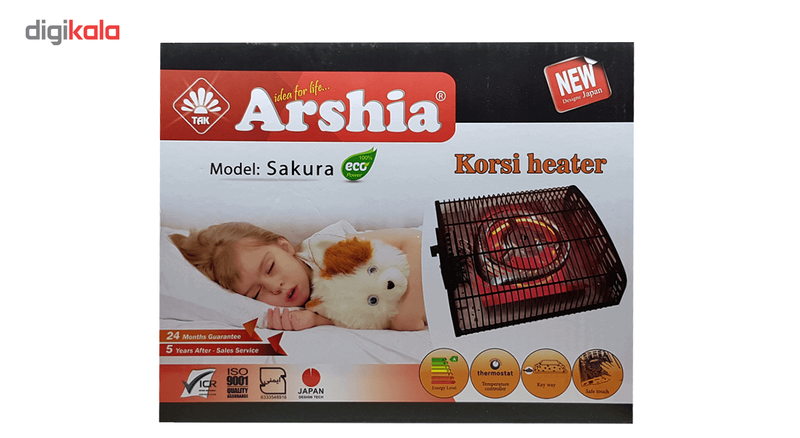 کرسی برقی ارشیا Arshia مدل SAKURA یک دستگاه مدرن با کاربرد سنتی و مصرف کم با رده انرژی A است که به شما این امکان را می دهد لذت نشستن کنار کرسی را بدون روشن کردن منقل و زغال تجربه کنید. المنت برقی دستگاه با توان 350 وات به راحتی گرمایی مطبوع ایجاد می نماید، همچنین توسط ولوم چرخشی روی بدنه می توانید میزان حرارت دلخواه خود را از کم تا زیاد کنترل و تنظیم کنید. کرسی برقی ارشیا دارای حفاظ شبکه ای مستحکم و ایمن با روکش عایق بوده و سیم بلند 3 متری به شما کمک می کند تا کارایی و استفاده راحت تری داشته باشید. در ضمن می توان توسط کلید روشن و خاموش بین راهی تعبیه شده روی سیم برق به آسانی وسیله را روشن یا خاموش نمود. این کرسی از نظر ایمنی بسیار کارآمد بوده و مجهز به سیستم خاموشی خودکار در صورت ایجاد حرارت بیش از حد بوده و تا کم شدن دمای محیط دستگاه را موقتاً خاموش می کند تا از بروز آتش سوزی و خطرات احتمالی جلوگیری گردد.