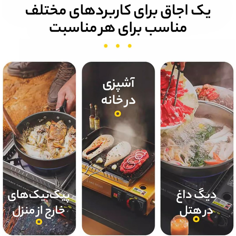 - کارکرد با کپسول گاز بوتان - قابلیت کارکرد با انواع کپسول های گاز از طریق اتصال شلنگ - دارای قفل کپسول - نوع سوخت : کپسول استوانهای