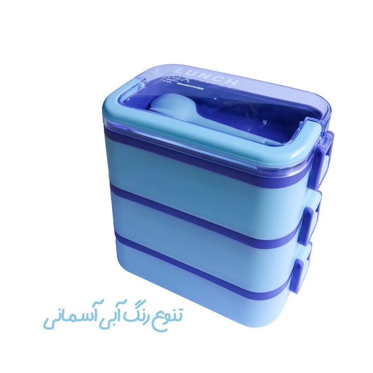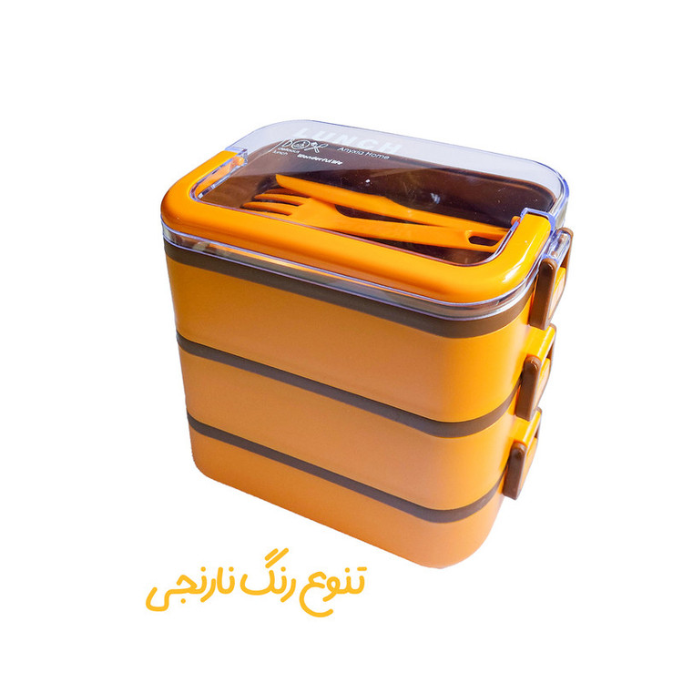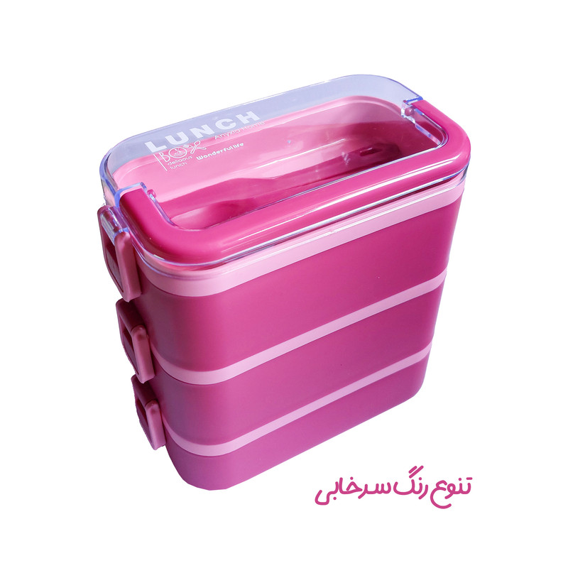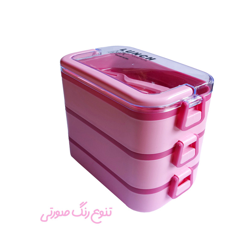 ظرف غذا مدل 3 طبقه طرح لانچ باکس به همراه قاشق و چنگال و چاقو