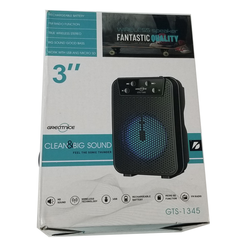 اسپیکر بلوتوث مدل GTS-1345 سری FANTASTIC با کیفت عالی و ورودی TF،USB که صدایی با کیفیت در اختیار کاربر قرار می دهد. ضمنا این اسپیکر از تکنولوژی TWS بهره می برد که میتوان دو اسپیکر را از طریق بلوتوث به یک ورودی صوتی متصل کرد. به نشان pta توجه داشته باشید برای خرید بهتر