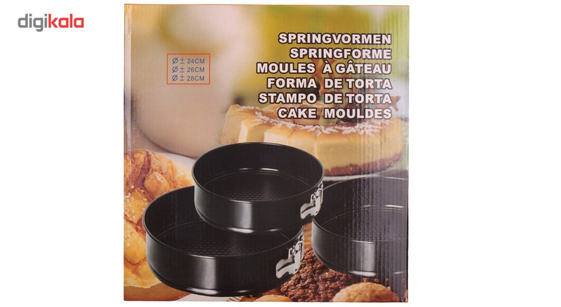ساخته شده از تفلون نسوز درجه یک جنس تفلون نچسب با کیفیت عالی دارای قفل ضامن جهت باز شدن و سهولت بیرون آوردن کیک از قالب ها