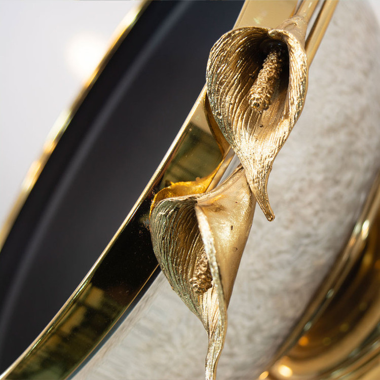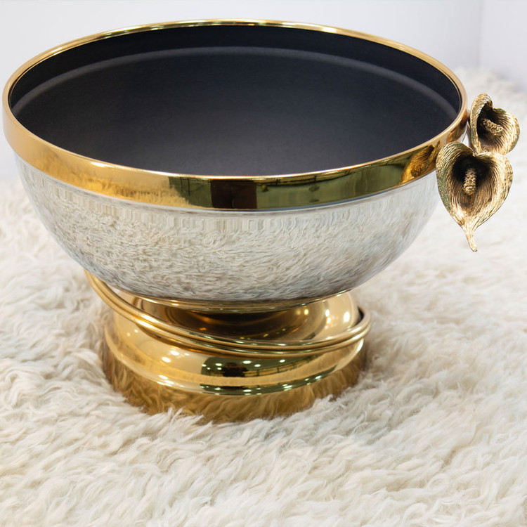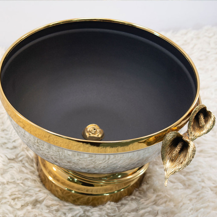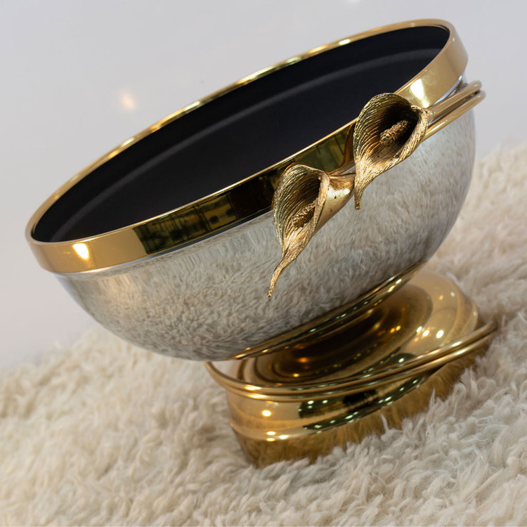 داخل کاسه از رنگ الکترواستاتیک مشکی استفاده شده است که خاصیت ضد زنگ دارد، بنابراین میتوانید بهراحتی از آن برای سرو میوههای خوشمزهتان استفاده کنید. گلهای بکار رفته در این محصول از جنس برنج بوده و با الهام از گل لیلیوم طراحی شدهاند.