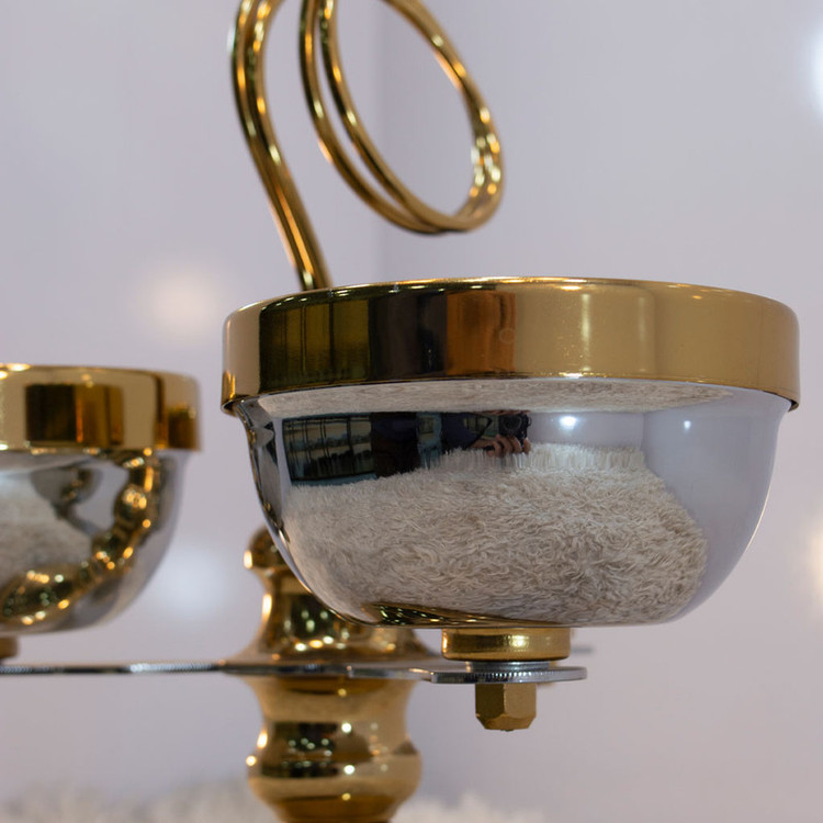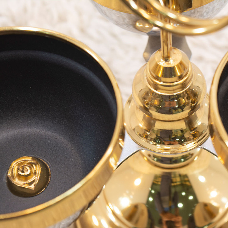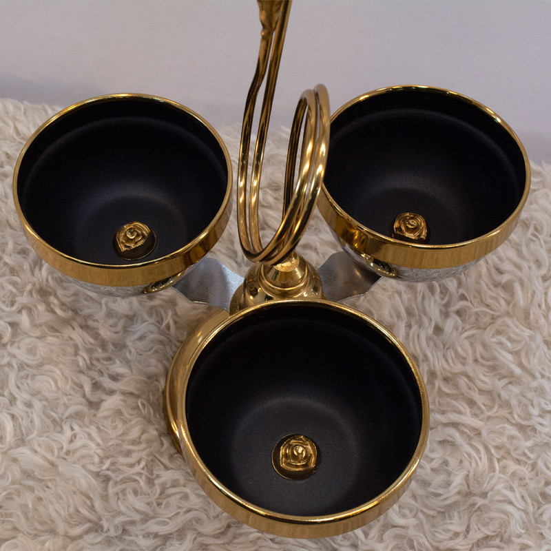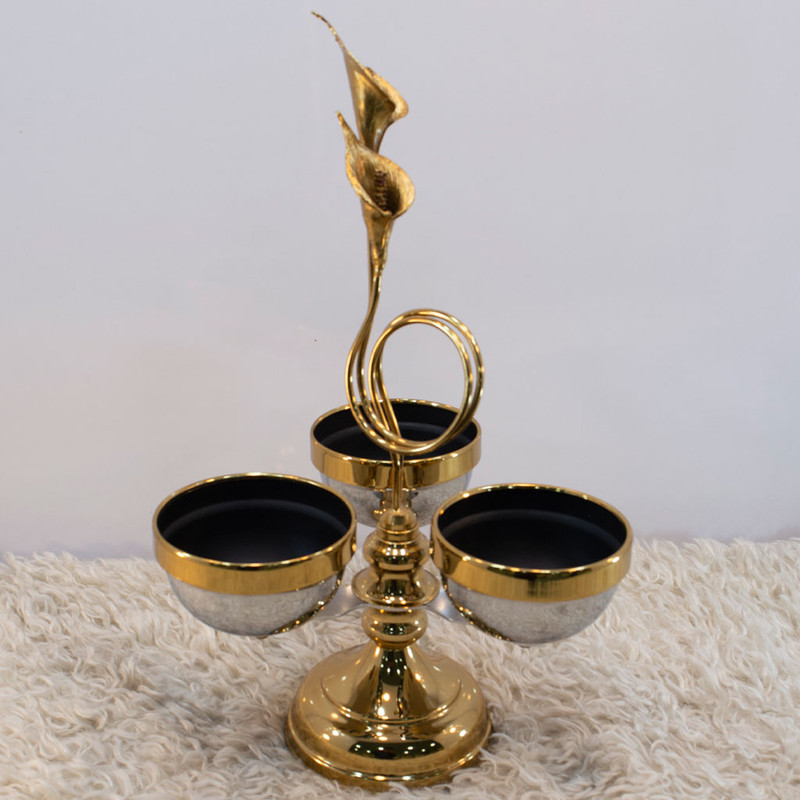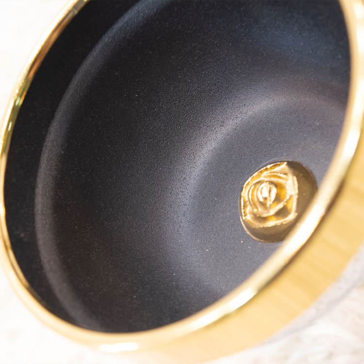 لازم به ذکر است که لبههای کاسه، پایه، و شاخه گل این محصول با آبکاری فورتیک طلایی تزئین شدهاند، که به آن ظاهری بینظیر و لمسی باورنکردنی میبخشد. همچنین، داخل کاسه با رنگ الکترواستاتیک مشکی پوشیده شده است که خاصیت ضدزنگ بسیار بالایی دارد.